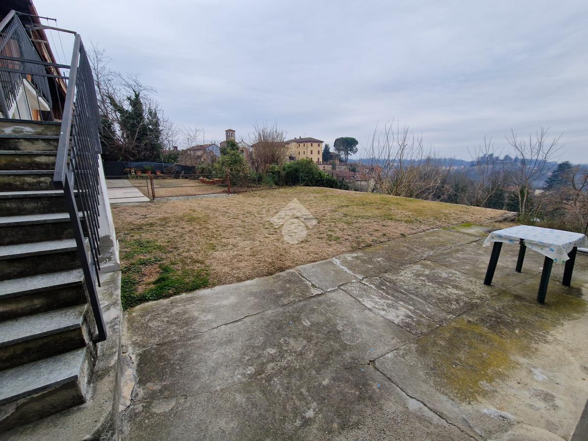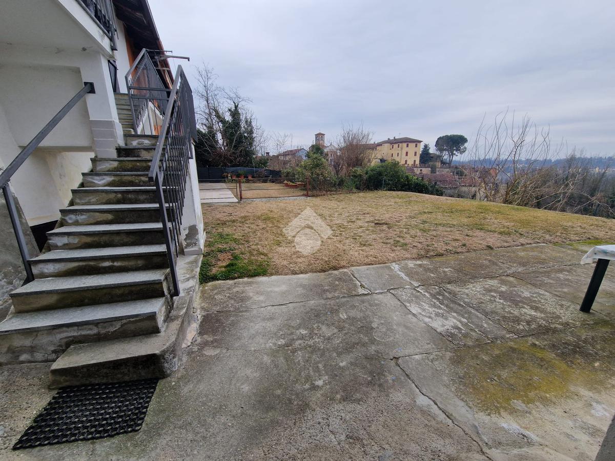 In zona collinare e panoramica, la porzione di casa, si trova nel comune di Montafia. L’abitazione si sviluppa su unico livello. L’ingresso tramite portoncino si affaccia sulla zona giorno suddivisa in salotto e cucinotto separato da cui si accede ad una comoda dispensa. Il disimpegno conduce nella camera da letto matrimoniale con accesso diretto al balcone e la seconda camera. Il bagno finestrato è dotato di box doccia. Gli infissi della casa sono stati sostituiti con quelli in legno con il doppio vetro. Completa al piano il ripostiglio. Nella zona sottostante la casa vi sono due locali di sgombero e una cantina. Il box auto è di generose dimensioni. Il giardino privato è cintato ed è di circa 1000 mq.