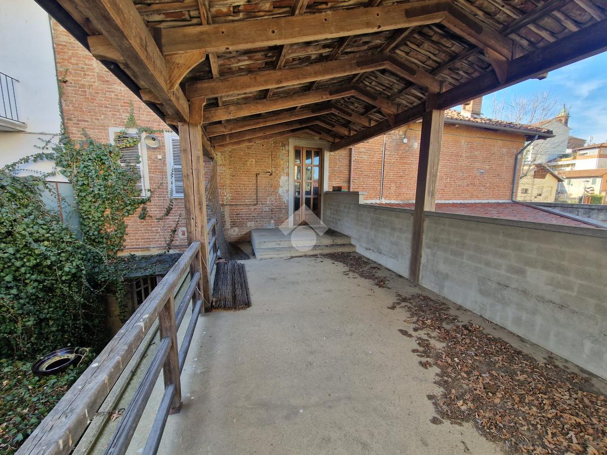 La soluzione indipendente si trova nella piazza centrale di Villafranca d’Asti. Dal carraio si accede alla prima parte della casa in cui si trova un giardino frontale di rappresentanza da cui si accede nella parte abitativa composta al piano terreno dalla zona giorno suddivisa in salotto e cucina che si collega direttamente al primo locale, una volta utilizzato come negozio di circa 78 mq con affaccio anche sul giardino posteriore. Dalla scala interna si accede alla zona notte alle due camere da letto di generose dimensioni che si affacciano sul balcone angolare. Dal giardino posteriore si accede alla seconda parte della casa. Le scale in pietra conducono nel terrazzo coperto in cui si affaccia la zona giorno composta dal salotto con altra camera da letto e bagno. Un secondo magazzino fronte strada di circa 130mq completa la proprietà. Nella parte posteriore si trova un polmone verde di 2.000 mq che offre privacy all’intera abitazione.